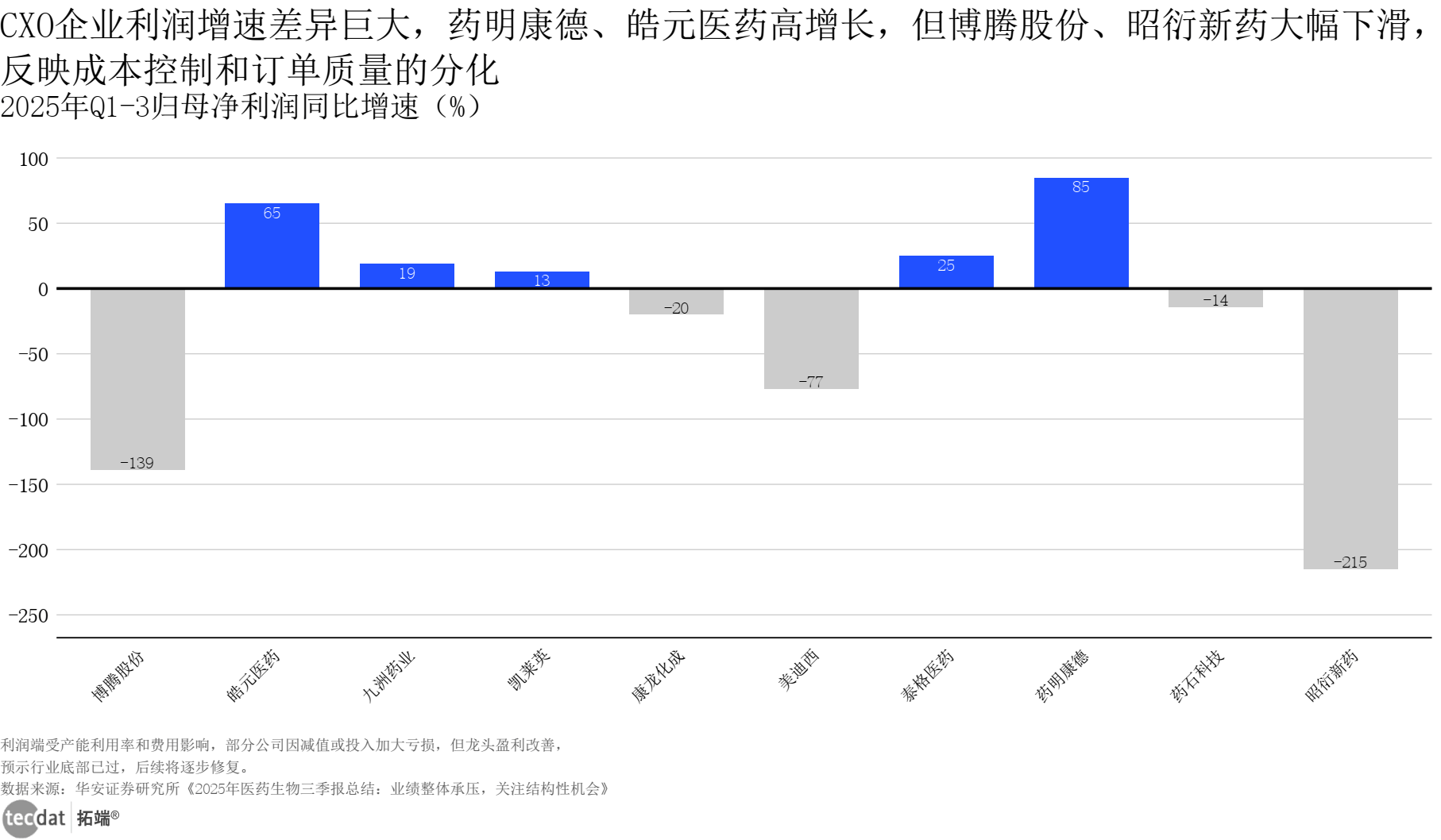 立异药企业收入取净利润增速呈现显著分化,但CXO板块净利润增速远超行业平均,支撑当地化快速摆设,
