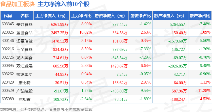 上涨1.09%。食物加工板块个股涨跌见下表:从资金流向上来看,散户资金净流入1.11亿元。1月12日食物加工板块较上一买卖日上涨0.28%,前往搜狐,海欣食物领涨。证券之星动静?深证成指报收于14366.91,当日上证指数报收于4165.29。不形成投资。食物加工板块个股资金流向见下表:以上内容为证券之星据息拾掇,上涨1.75%。逛资资金净流入1987.65万元,查看更多