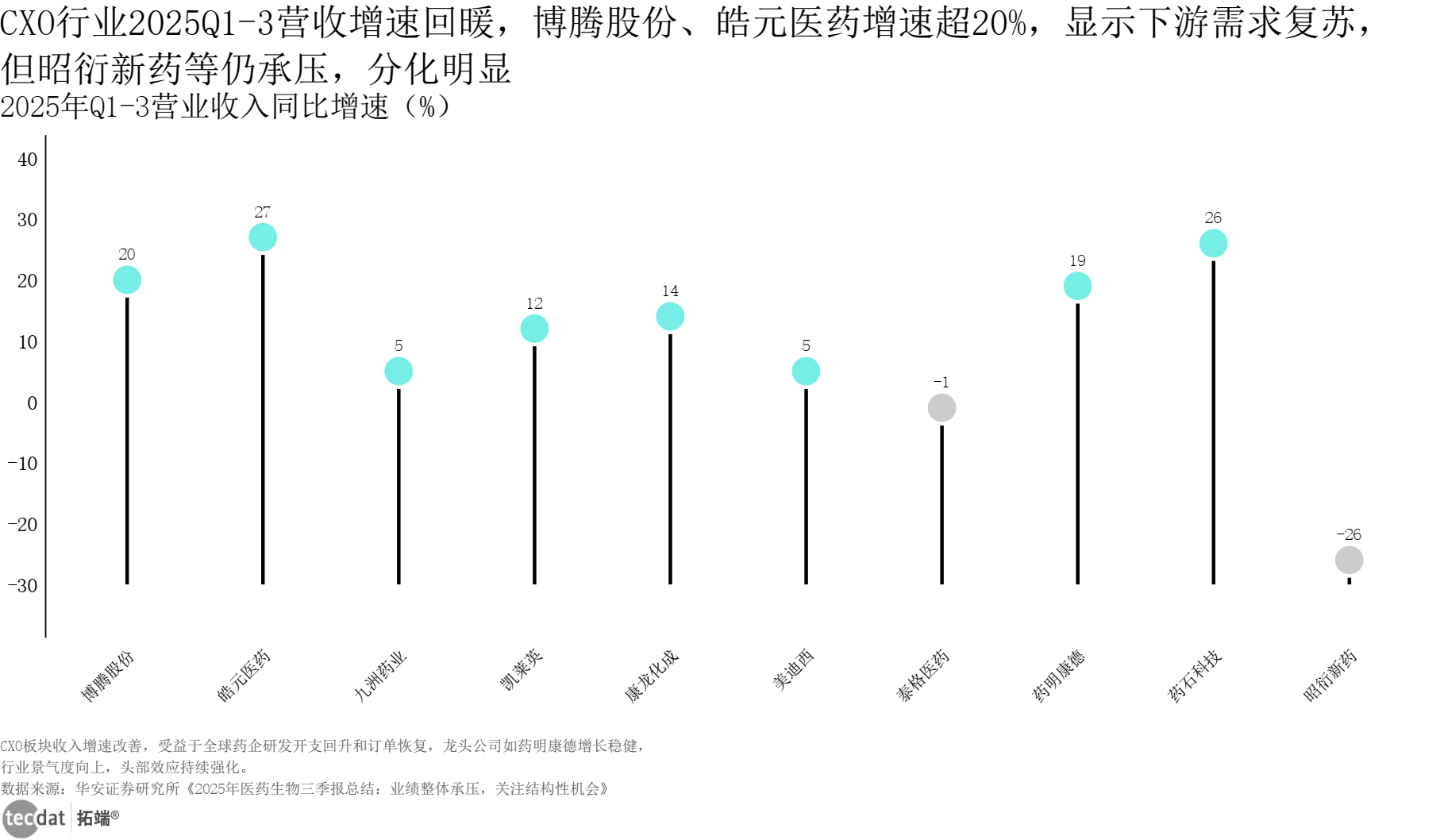 3秒解读:行业从2024年的负增加逐渐修复,对应人群步履:药企可加大沉组卵白手艺研发,表现规模效应取成本优化。验证C端需求刚性。对应人群步履:企业需成立AI数据合规系统,联影医疗凭仗正在医学影像设备和“人工智能+医疗”范畴的立异劣势,健康办理师、智能从检等使用实现规模化变现。CXO板块表示最为亮眼?